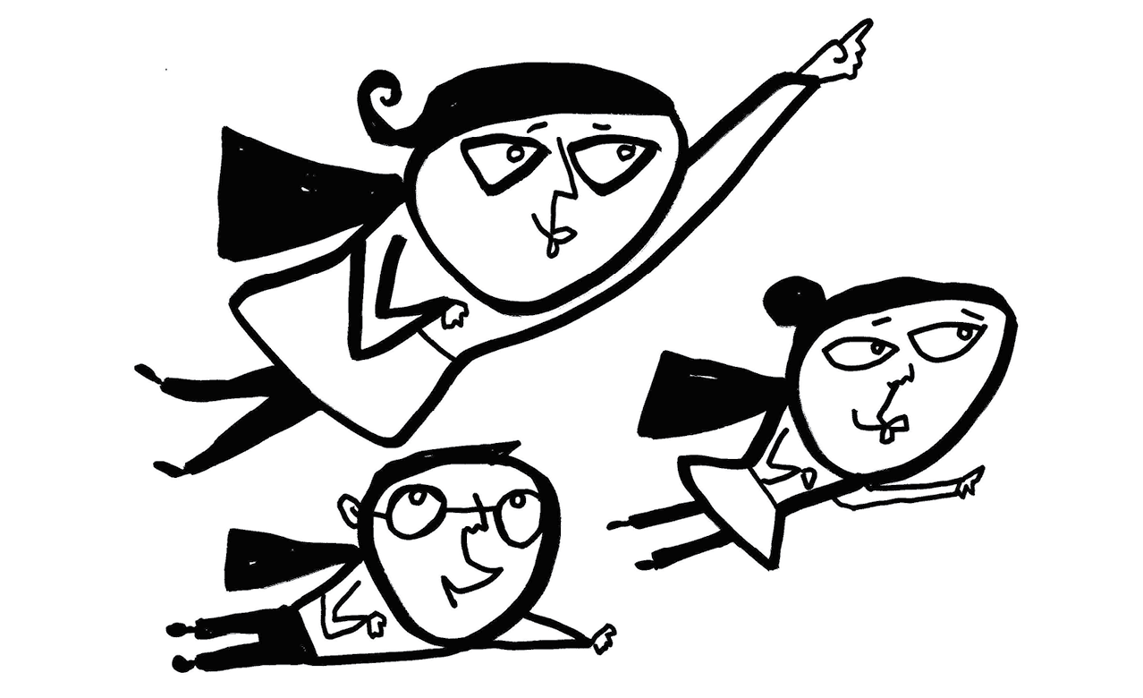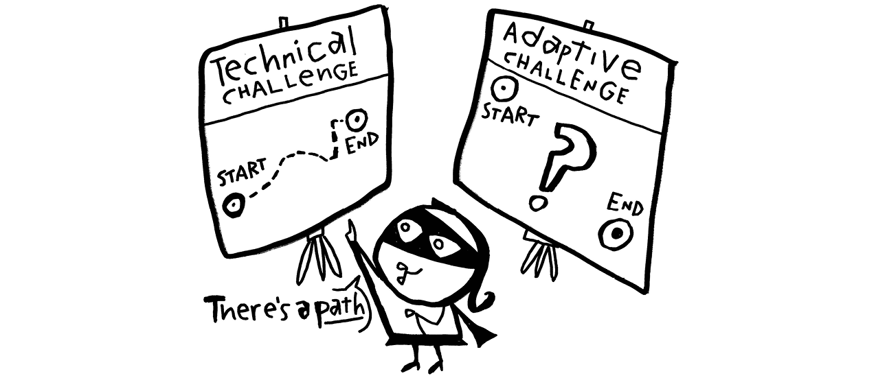 Two humans (us, the co-authors) fighting with the three-headed hydras while mobilizing heroic change agents