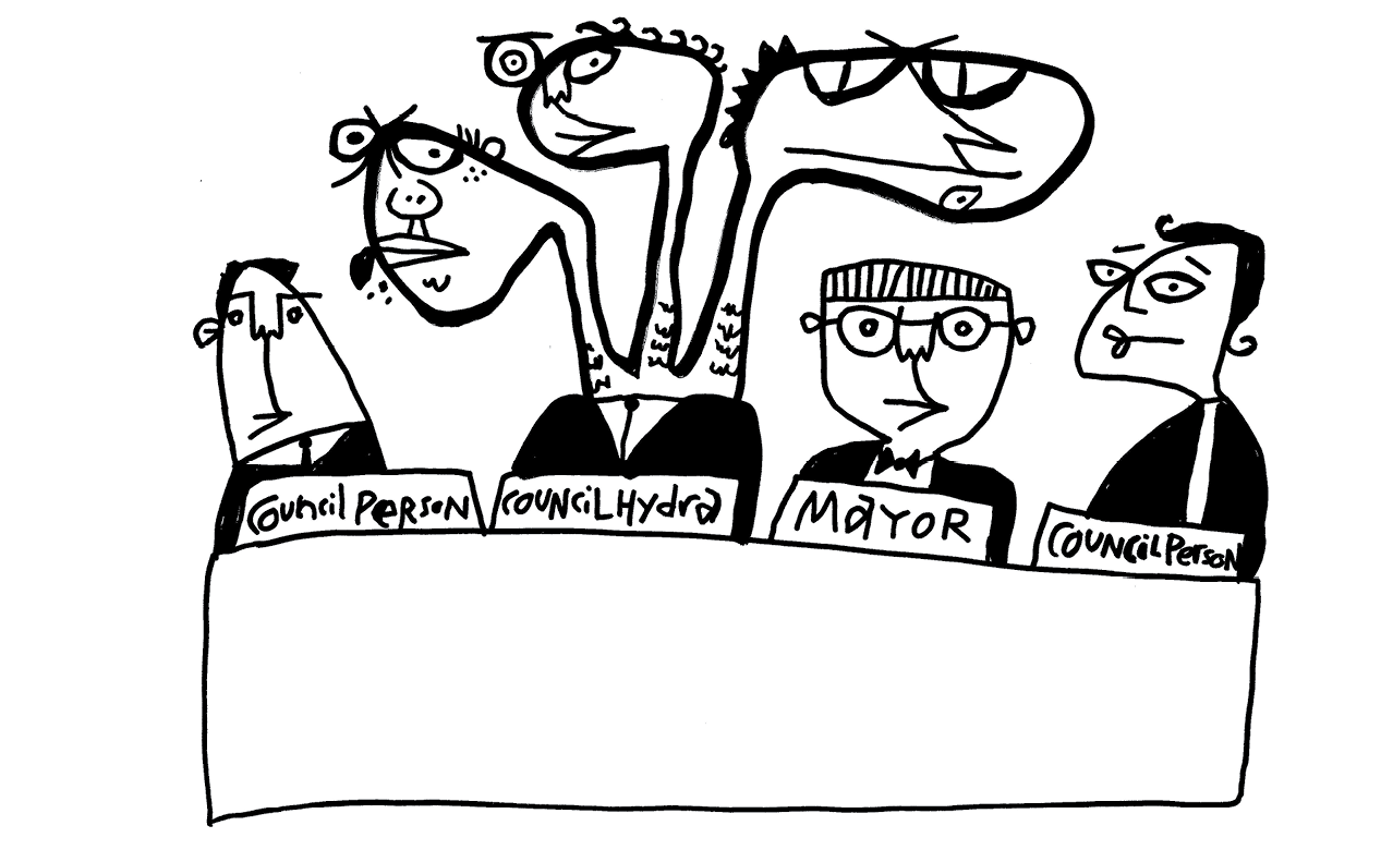 Some of the text is adapted from our book 100% Community: Ensuring 10 vital services for surviving and thriving. We use the term “we” in almost every article but sometimes an “I” slips in. If so, we attempted to make a note explaining which of us was sharing a story. And as for the illustrations, any resemblance to an actual human or three-headed hydra you may know is pure coincidence.